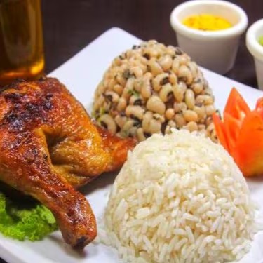 Metade do Galeto, Feijão, arroz, macarrão, verdura vinagrete, farofa e batata frita