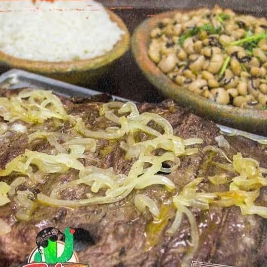 Carne de sol suculenta na brasa, refogada na manteiga com cebola, tomate, pimentão e finalizada com queijo coalho. Acompanha feijão macassar, arroz branco soltinho, batatas fritas crocantes, pirão de queijo, farofa da casa e vinagrete fresco. Ideal para almoço ou jantar, com frete grátis.