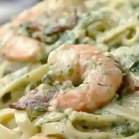 Camarões grelhados acompanhados de massa caseira regado ao molho grana. (Mais pedido)