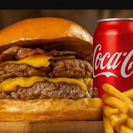 1 Burguer Bacon + 1 batata + 1 coca lata Serve 1 pessoa