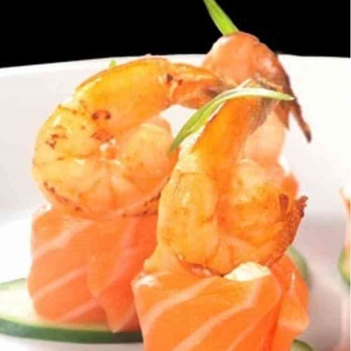 Roll envolvido por salmão e recheado com camarão e cream cheese.