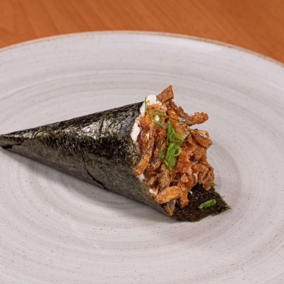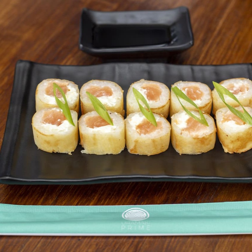 Roll frito feito de massa crocante, com arroz, recheio e cream cheese.
