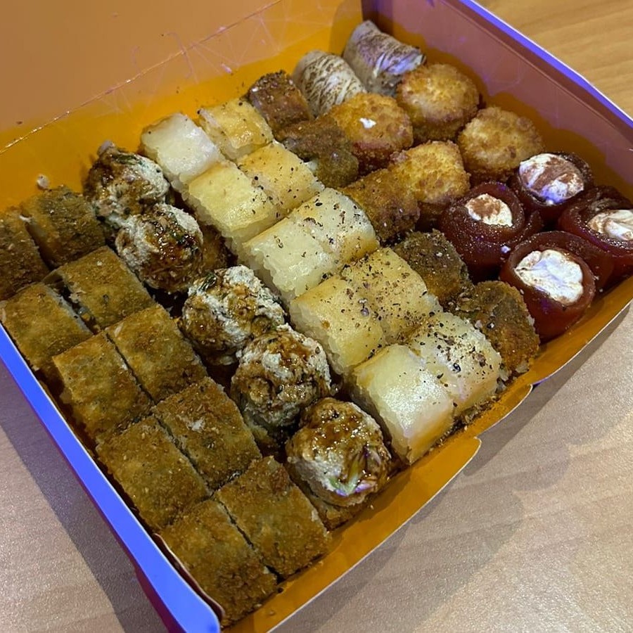 10 cariocas de salmão, 10 harumakis de kani, 5 canapés, 5 cariocas de atum, 2 ebi tuna prime, 4 kani keijo, 4 goiabadas prime(sobremesas) - Inalteráveis.