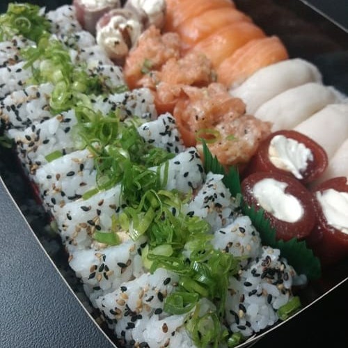 10 Cariocas salmão, 10 Uramaki Salmão, 10 Uramaki Salmão grill, 04 Jo Jo, 10 Harumaki Kani, 10 Carioca Atum, 05 Niguiri De Peixe Branco, 05 Niguiri salmão, 03 Ebi Tuna Prime, 03 Goiabada Prime. Inalteráveis