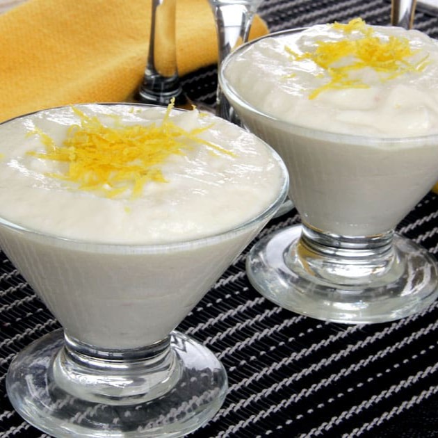 Delicioso mousse de limão finalizado com raspinhas de limão siciliano.