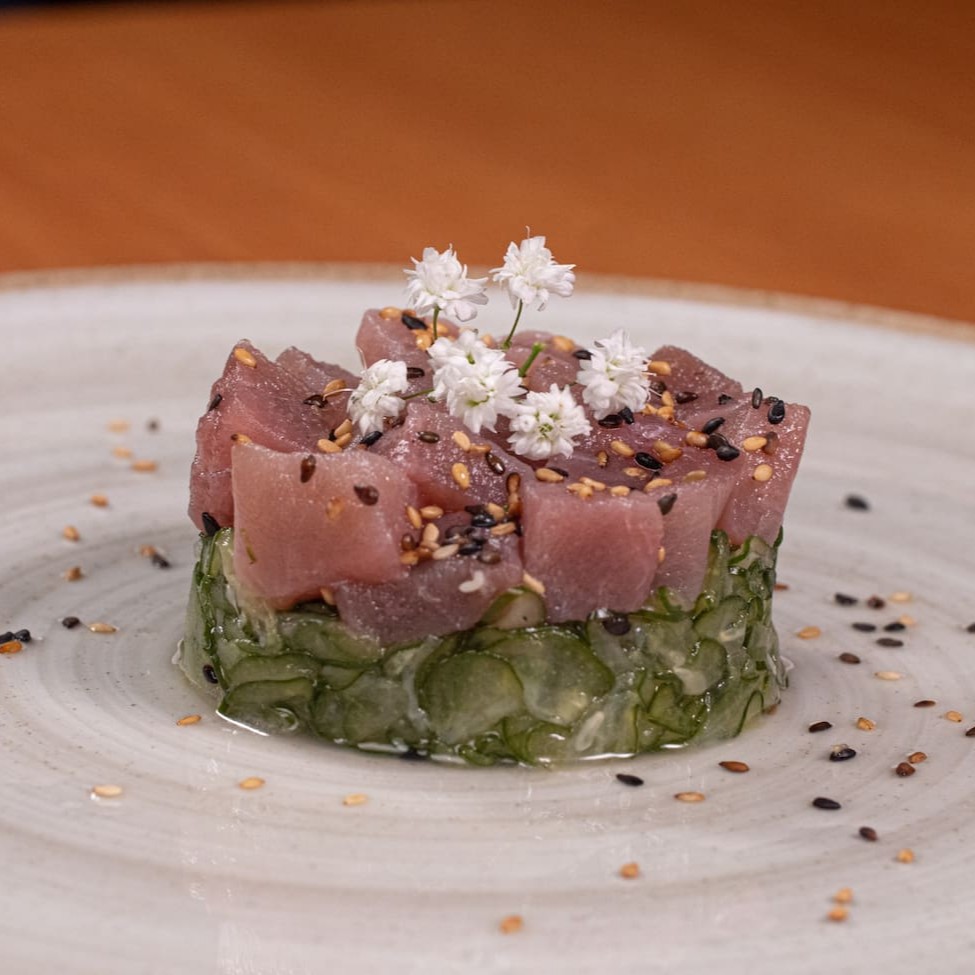 Entradinha a base de salada de pepino em conserva com cubos de atum. (180g)