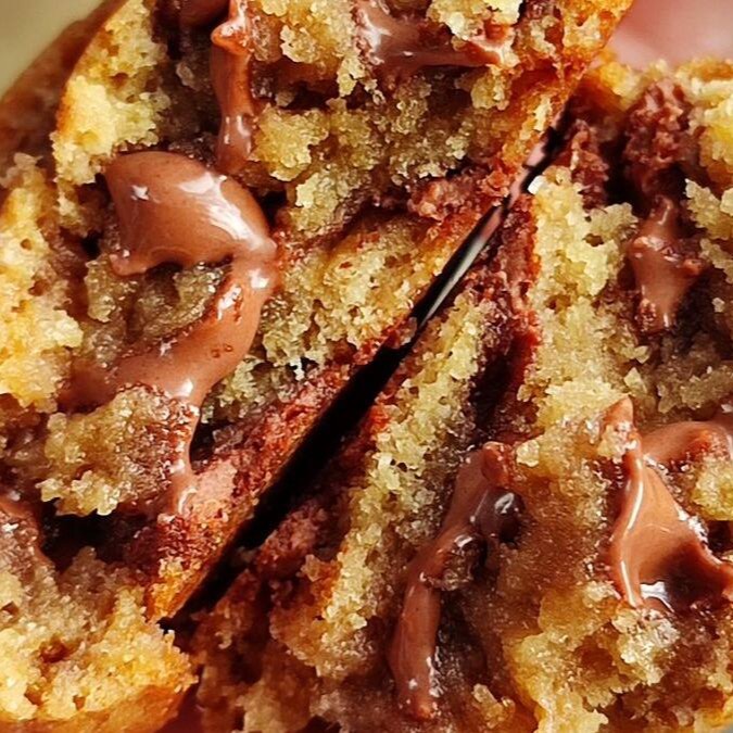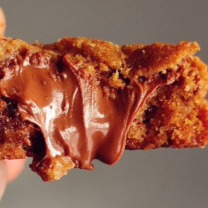 Massa tradicional, gotas de chocolate branco e recheado com muuita Nutella.