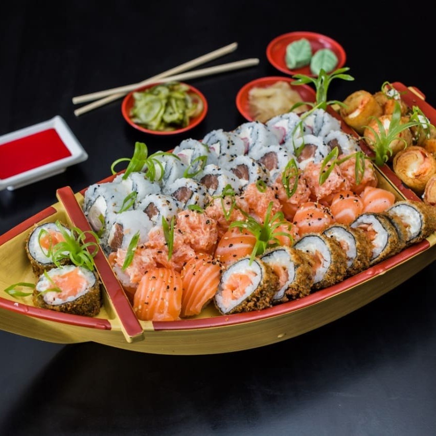 8 Niguiris de Salmão 8 Especiais (Jojo, Ebijo, Kani Queijo) 10 Filadélfias Salmão 10 Cariocas 10 Uramakis Kani 10 Hot Roll's