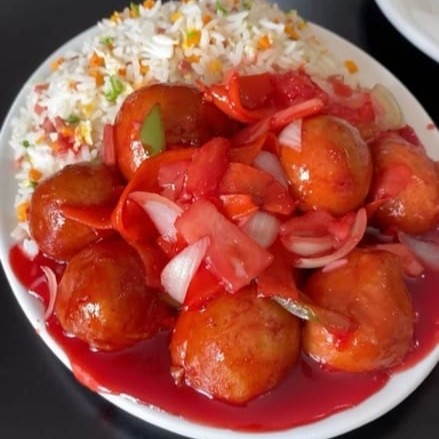 Frango agridoce+arroz chop suey