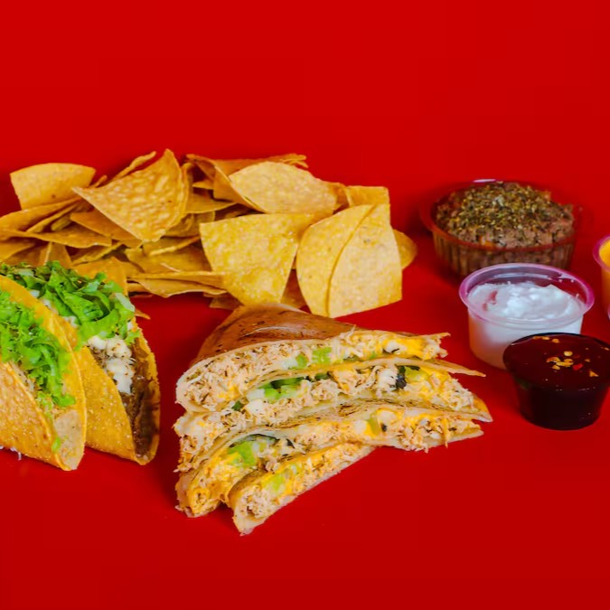 2 tacos + nachos + quesadilla.