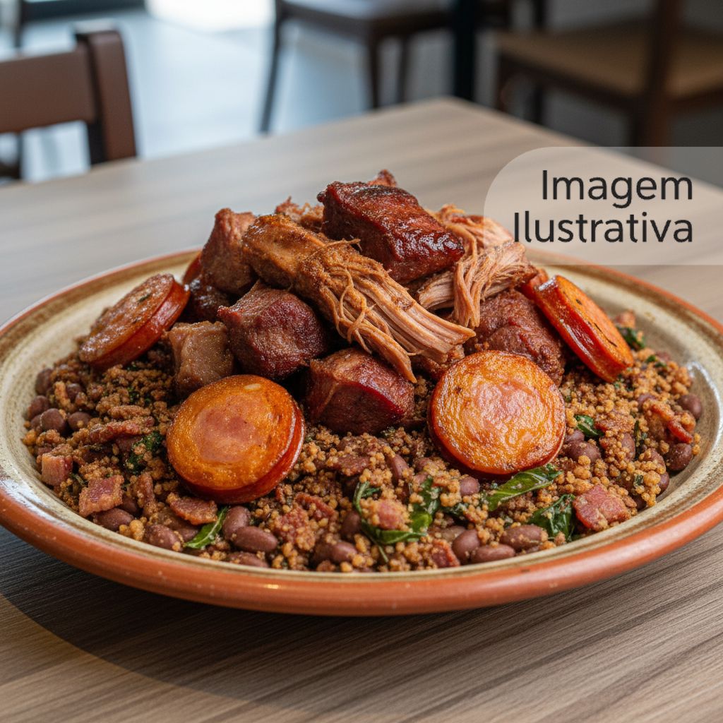 feijão mulato arroz macarrão salada legumes cozido e farofinha