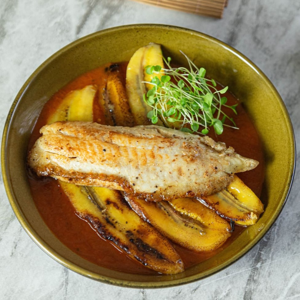Filé De Tilápia Com Banana-da-terra E Molho De Tomate