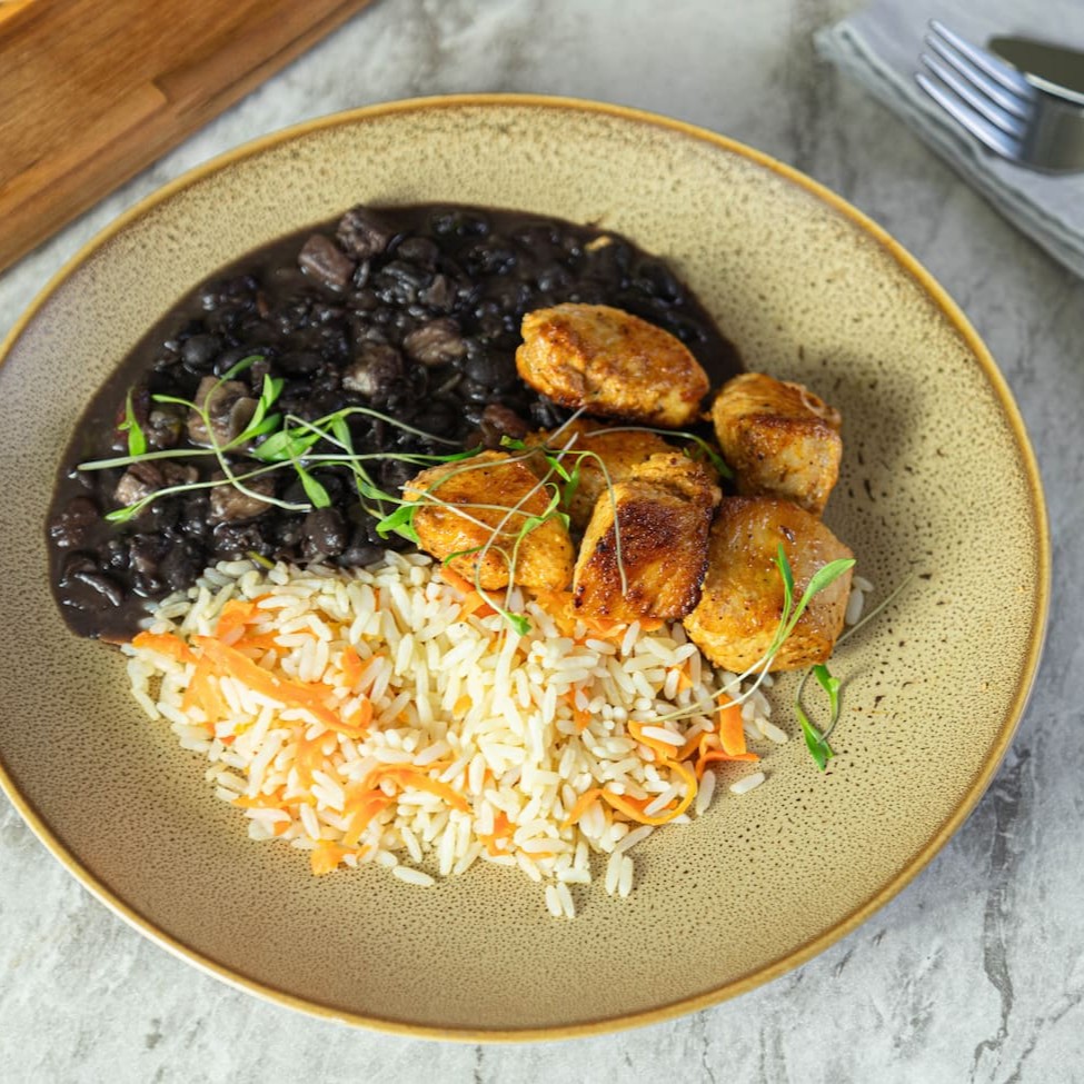 Frango Grelhado , Feijão Preto E Arroz Com Cenoura