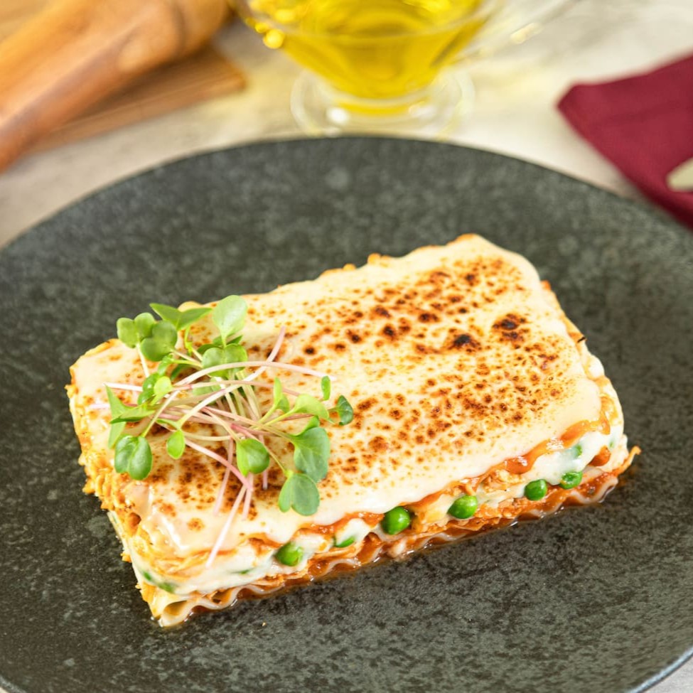 Quem diria que você poderia comer uma verdadeira lasanha de frango sem culpa, né? Pois é, aqui nossa lasanha é deliciosa, e recheada com queijo muçarela e um delicioso molho de tomate artesanal da casa, intercalado com um molho branco e um suculento peito de frango desfiado e ervilhas frescas. Obs: Não trocamos, ou retiramos ingredientes.