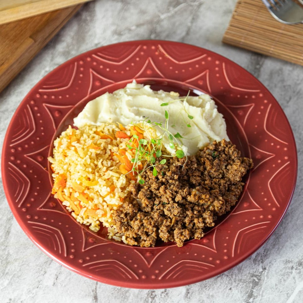 Essa carne moída de alcatra tem um temperinho 100% natural que vai te surpreender! Para acompanhar, preparamos o arroz integral com cenoura e um purê de batata-doce com leite de coco que faz desse prato uma combinação perfeita de sabores únicos e irresistíveis. Vale a pena experimentar!
