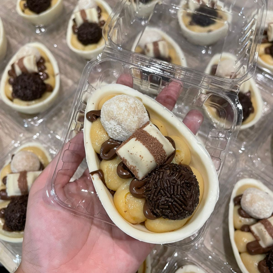 Composto por brigadeiro de leite Ninho, Nutella e bolo de chocolate.