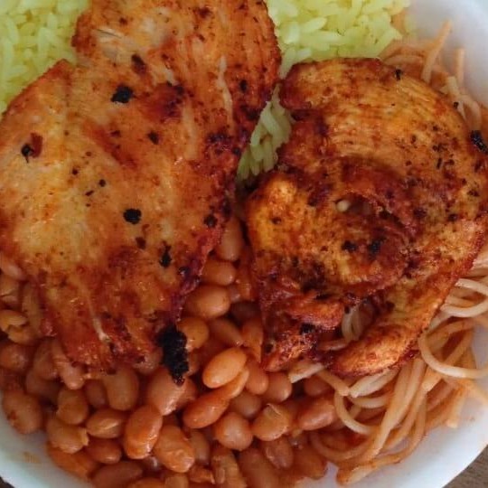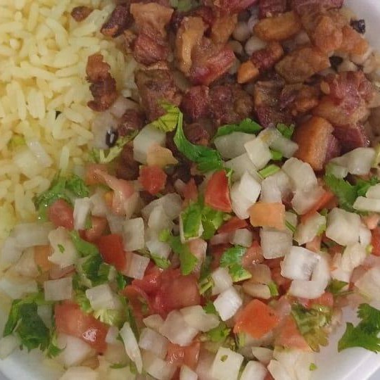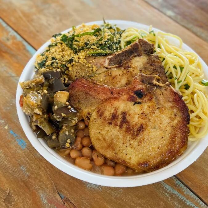 Nossa Marmita acompanha Arroz , Feijão macassar , Farofa e Vinagrete.