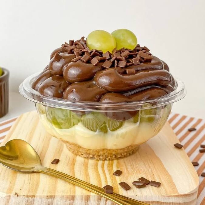 Brigadeiro de Ninho, pedaços de uva verde e brigadeiro tradicional cremoso.