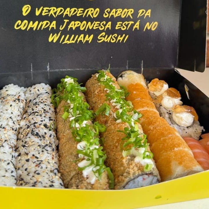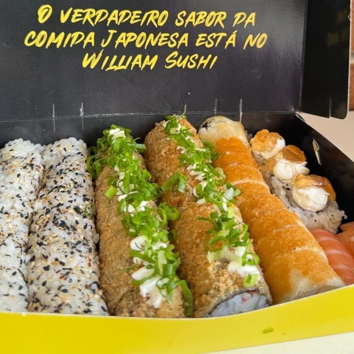20 peças: 2 joy especial, 2 joy joy, 2 ebi joy, 2 joy com couve, 2 joy com Doritos, 5 kani cheese empanado, 5 uramaki especial.