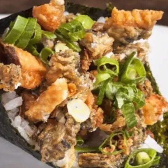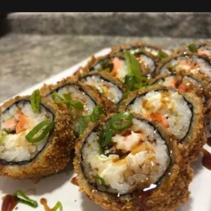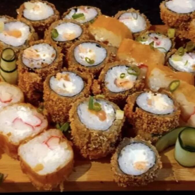 Nori Enrolado Com Shari, Kani Empanado Frito, Cream Cheese E Cebolinha