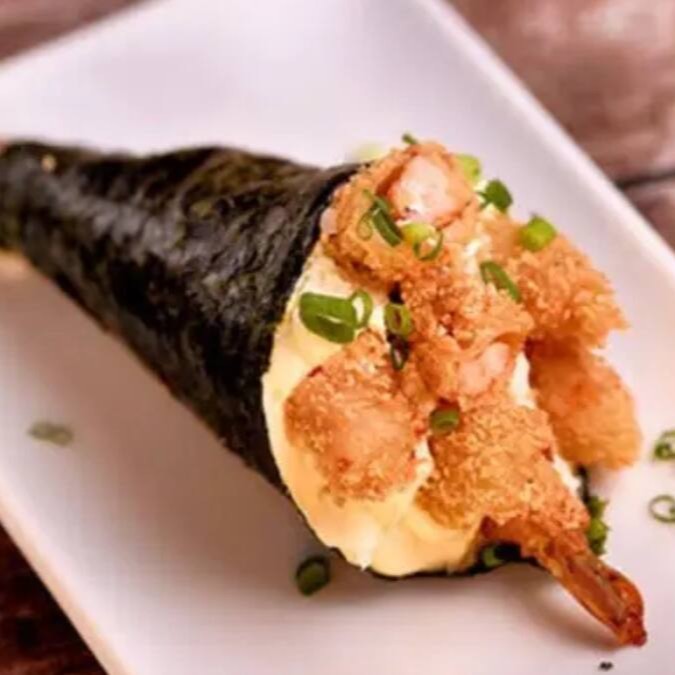 Nori Enrolado Com Shari, Camarão Crocante, Cream Cheese E Cebolinha