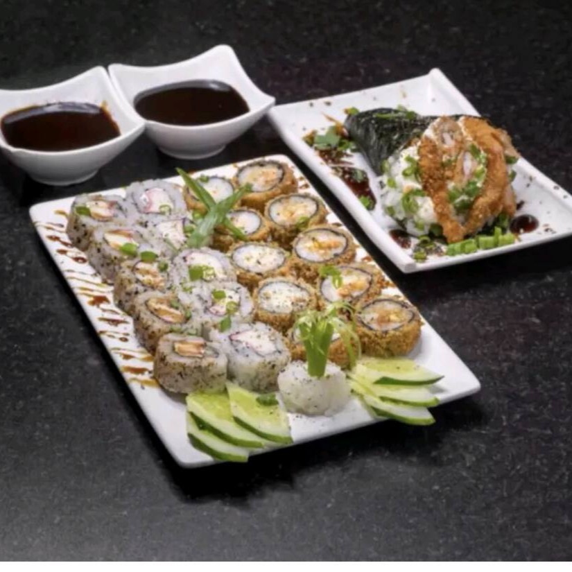 10 Uramaki Kani , 10 Hossomaki Salmão, 10 Hot Rool De Kani, 10 Carioca Salmão, 2 Jojo , 4 Niguiri Kani, 4 Niguiri Salmão