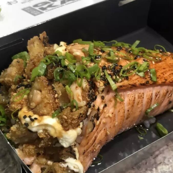 Lamina De Salmão Maçaricada Com Shari, Camarão Crocante, Cream Cheese, Cebolinha E Gergelim