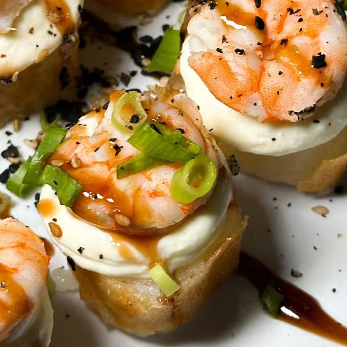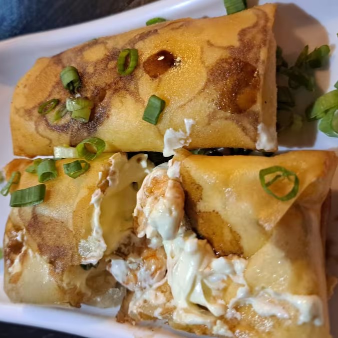 Rolinho de massa de harumaki com delicioso recheio de camarão e cream cheese.