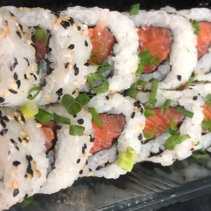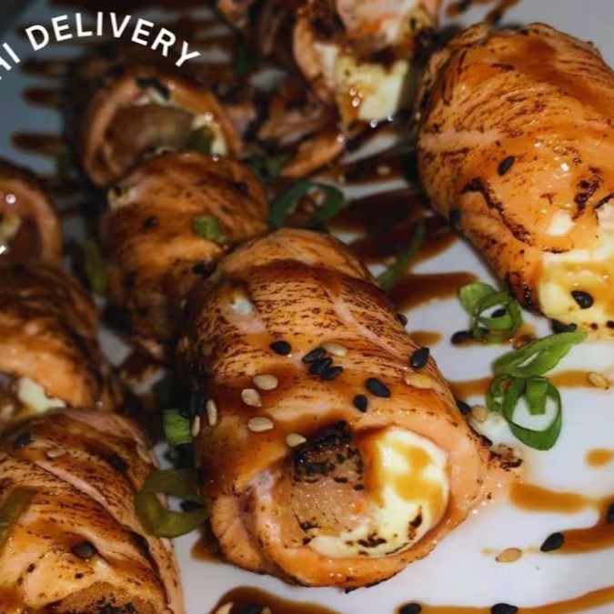 Enrolado de arroz com gergelim e com delicioso recheio de Salmão e cream chesse