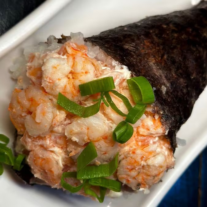 Cone de nory, com saboroso recheio de arroz, cream cheese e camarão empanado.