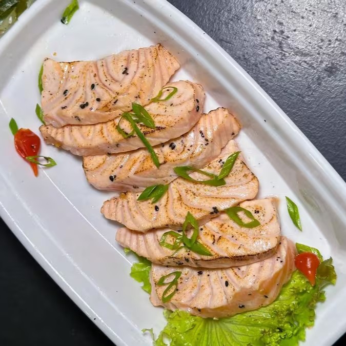 Apresentamos a nossa Coxinha de Salmão, uma joia da categoria 'Peças Especiais'. Nesta requintada iguaria, o saboroso salmão é harmoniosamente combinado com um suave cream cheese e nosso arroz exclusivo, criando um recheio inesquecível. A coxinha é meticulosamente empanada na crocante farinha Panko, proporcionando uma textura contrastante que encanta o paladar. Tudo é cuidadosamente frito até atingir a perfeição dourada. Um deleite para os amantes de frutos do mar e da culinária sofisticada.