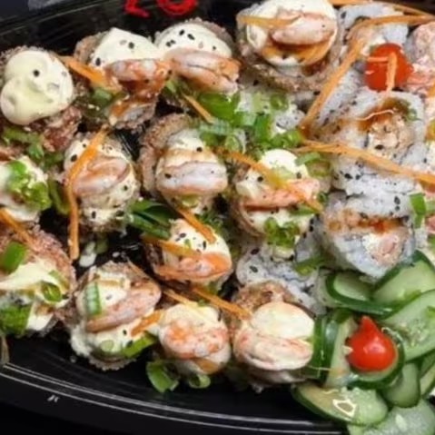10 carioca skin + 10 uramaki kani + 5 bolinha japonesa salmão