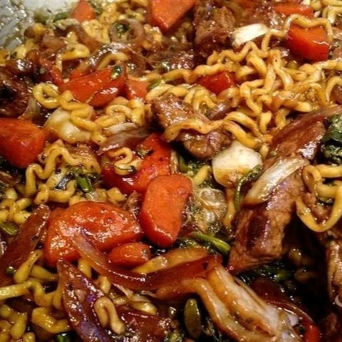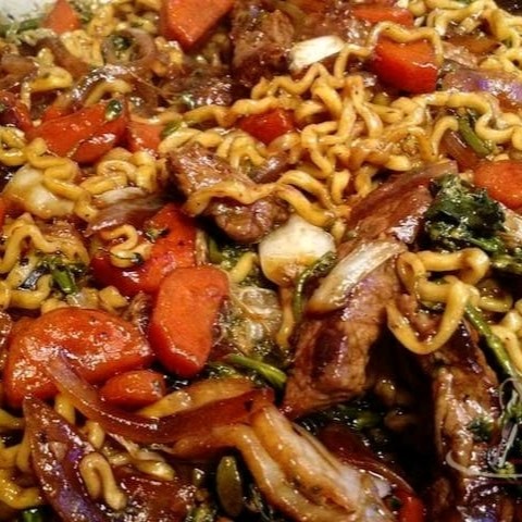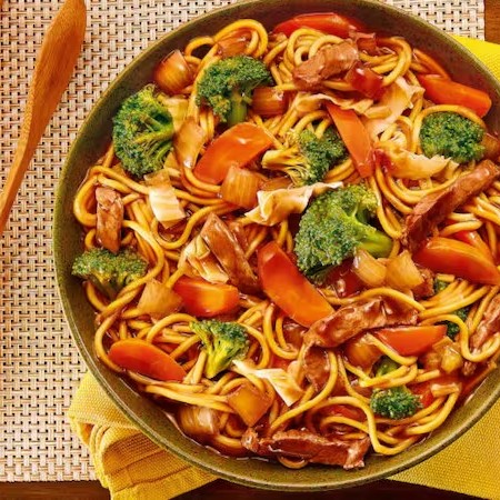 Delicioso Yakissoba de carne e legumes, com aproximadamente 1kg, ideal para até 2 pessoas.