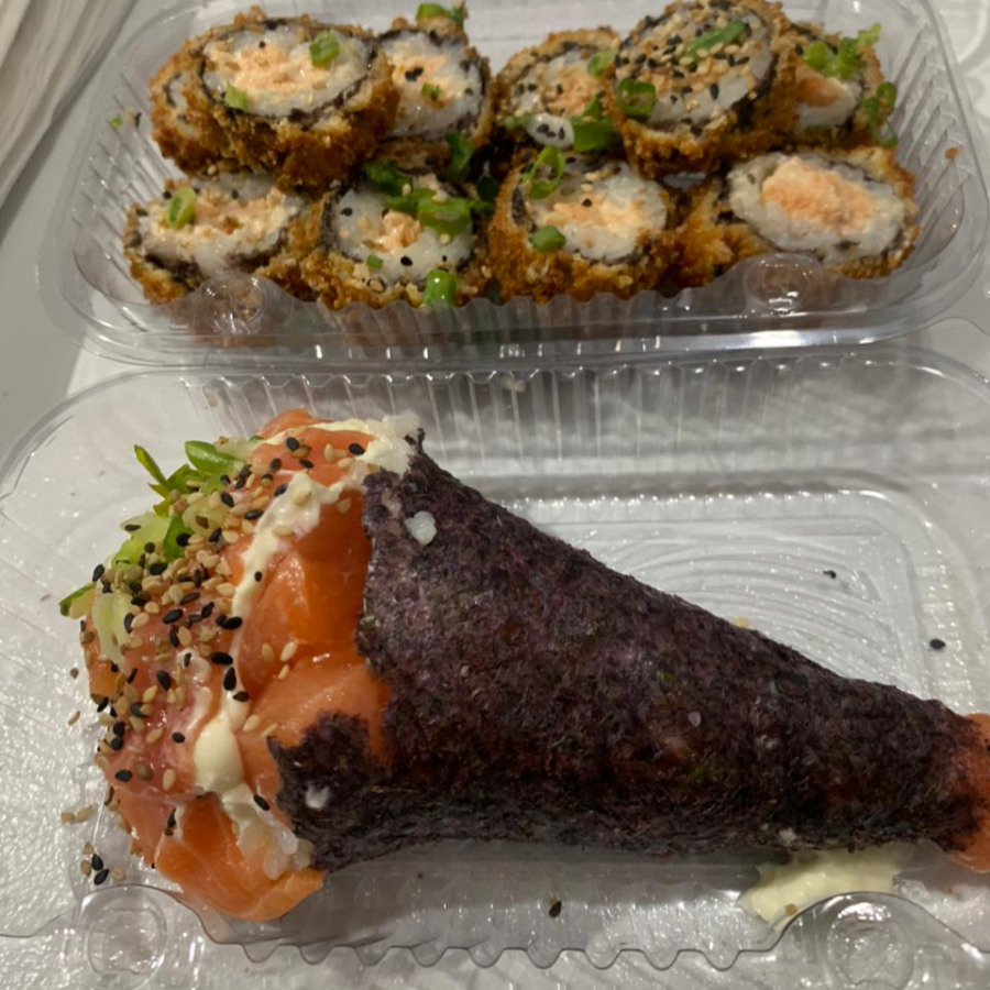 10 carioca de salmão, 10 uramaki de camarão, 5 nigiri de salmão e 5 hotholl