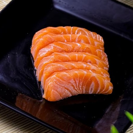 6 Uramakis Salmão Grelhado com uma lâmina de salmão por cima de cada peça!