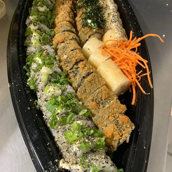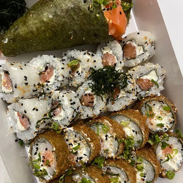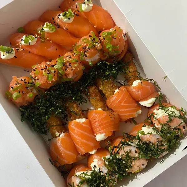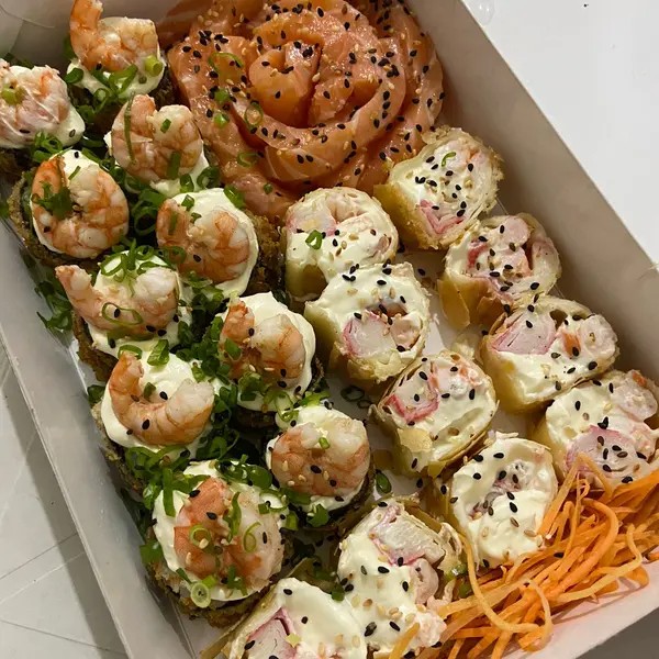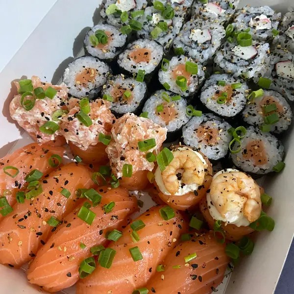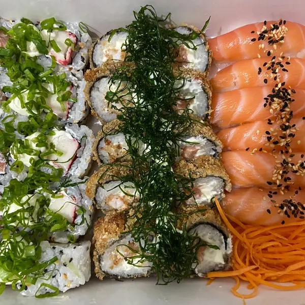 10 uramaki de salmão 10 uramaki de kani 10 uramaki yuki san ebi 10 carioca de camarão 10 hossomaki de salmão 10 hot rolls de kani 05 niguiri de salmão 05 ebi dragon 05 joy joy 05 ebi joy