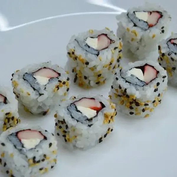 Kani recheado com creme cheese, coberto com gergelim e cebolinha. 8 unidades