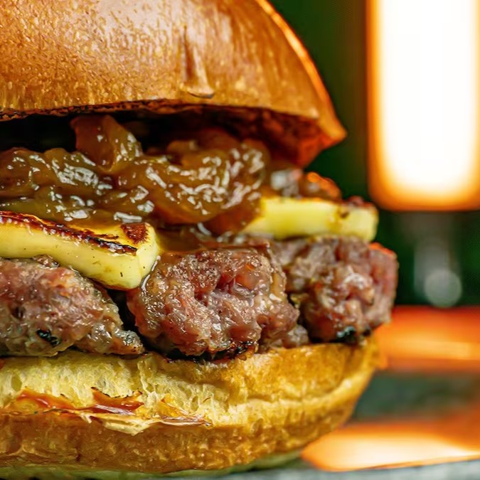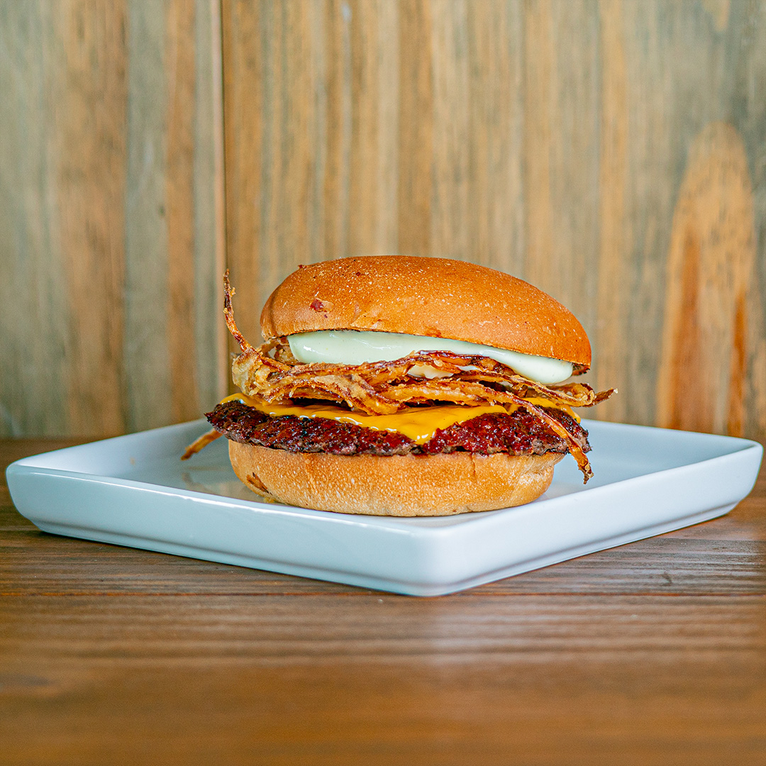 - pão brioche, hambúrguer de carne-de-sol, queijo coalho, cebola caramelizada no mel de engenho e manteiga de garrafa.