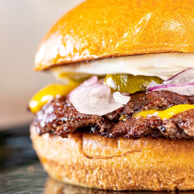 - pão brioche, blend bovino esmagado, queijo cheddar fatiado e molho especial