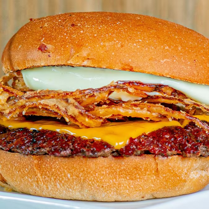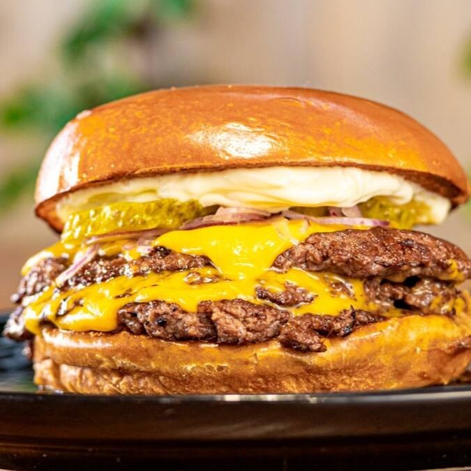 - pão brioche, 3x blend bovino prensado na chapa, 3x queijo cheddar, cebola roxa, picles e molho especial