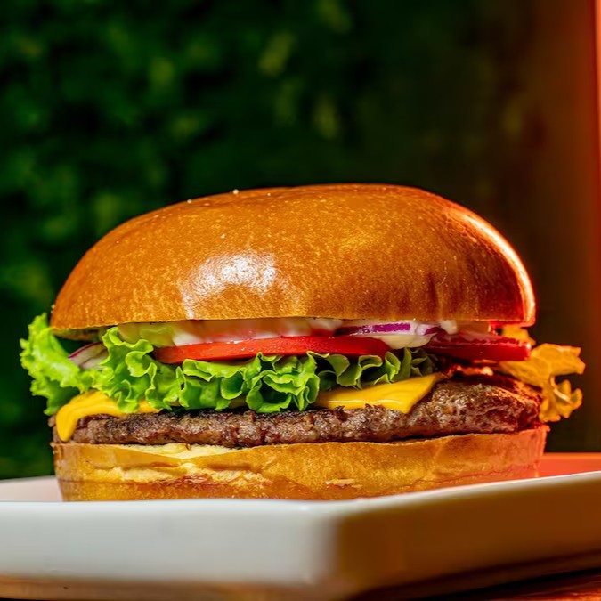 - pão brioche, hambúrguer de carne, queijo cheddar e molho especial.