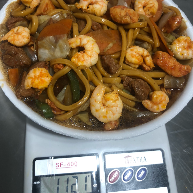 nosso yakisoba de 1 KG vem com macarrão, um delicioso molho, além das carnes que são: carbe de boi, frango e camarão, temos também as verduras: cebola, cenoura, pimentão e repolho