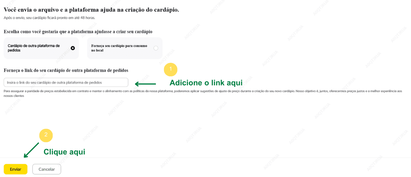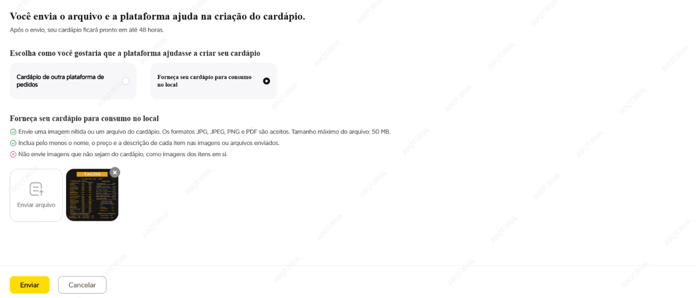 Se o restaurante tem serviço de balcão, o menu de outra plataforma não é aceito