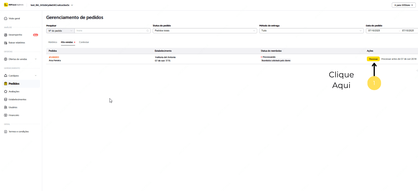 Em Pedidos, você terá a visualização de todos os pedidos que já aconteceram. Selecione Pós-Vendas.