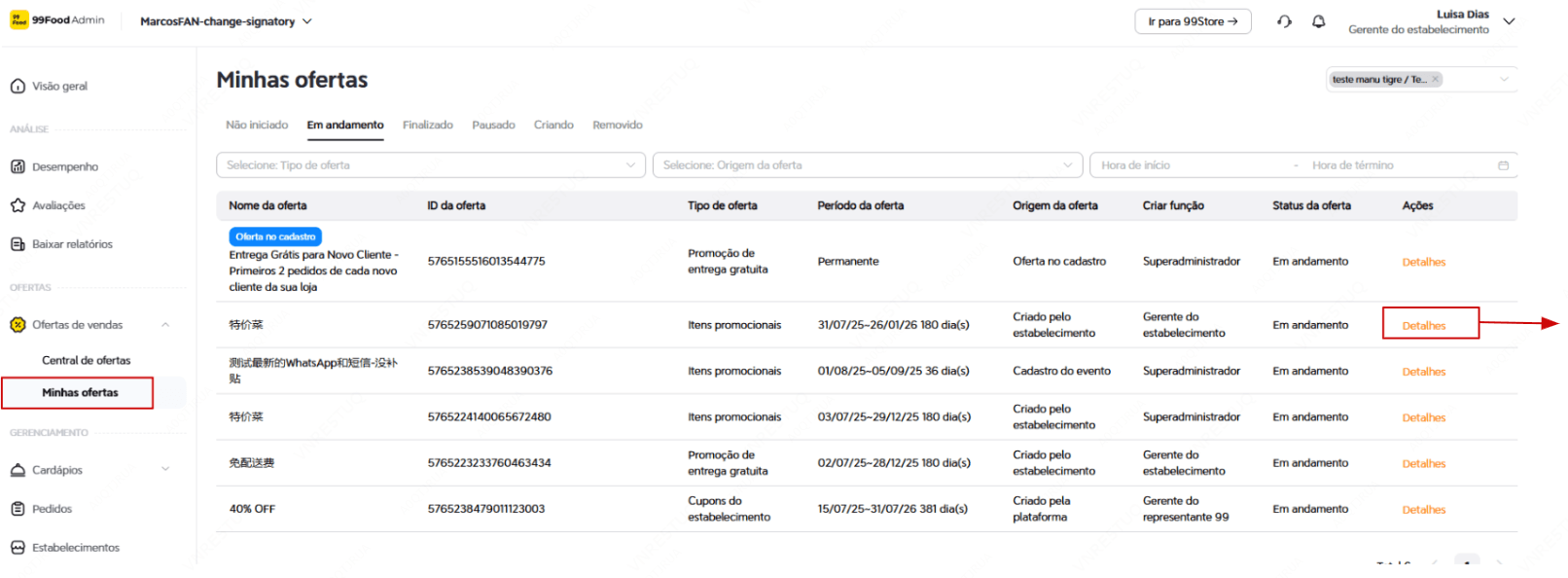 Acesse a aba Minhas ofertas, ao lado de "Central de ofertas".
