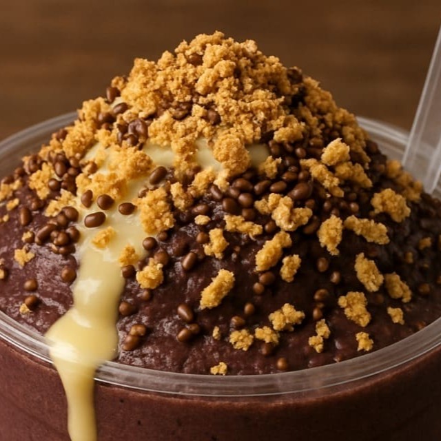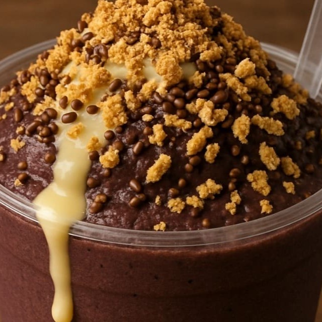"""Desfrute de um delicioso açaí batido na hora, preparado com a barra de açaí, xarope de Guaraná e fatias de banana frescas. As guloseimas vão todas no topo, garantindo uma combinação perfeita de sabores e texturas em cada colherada!"""