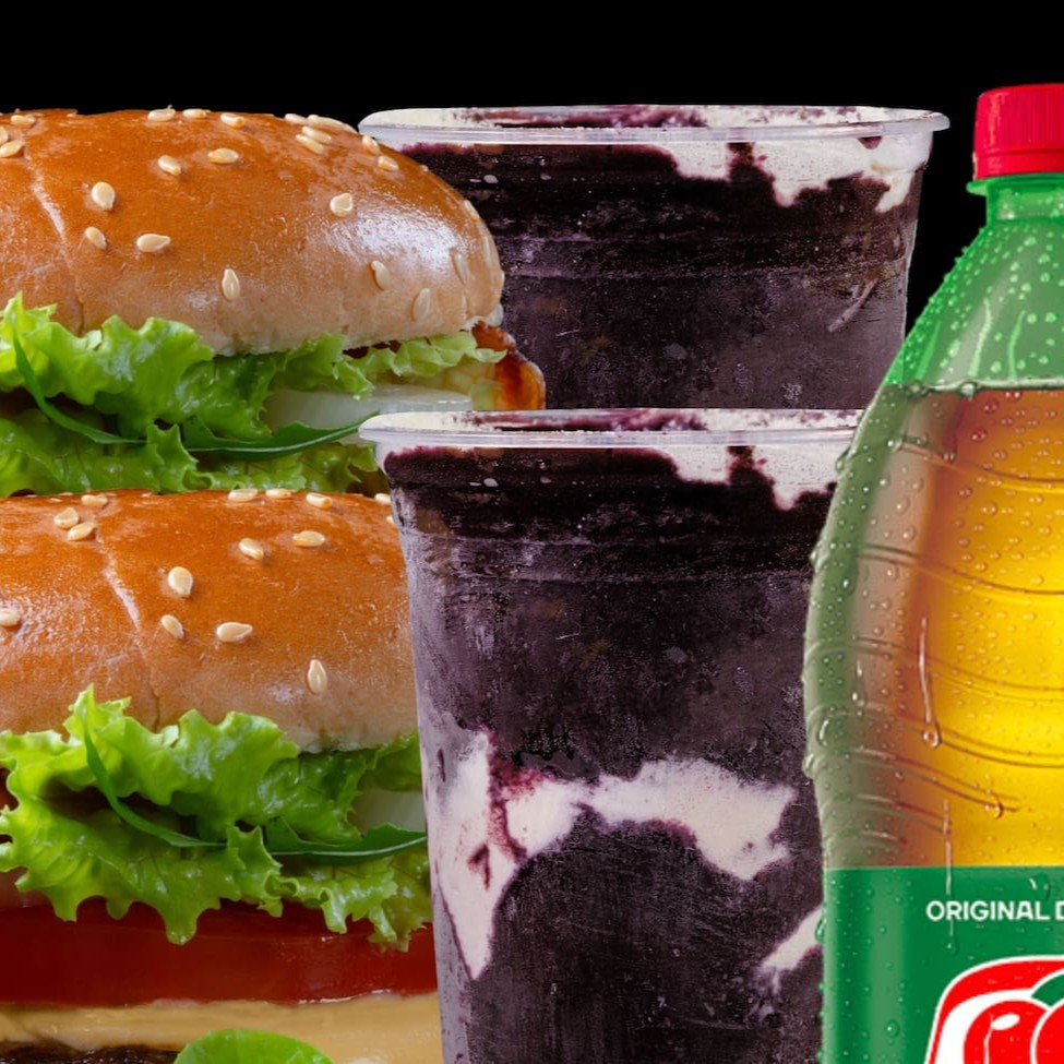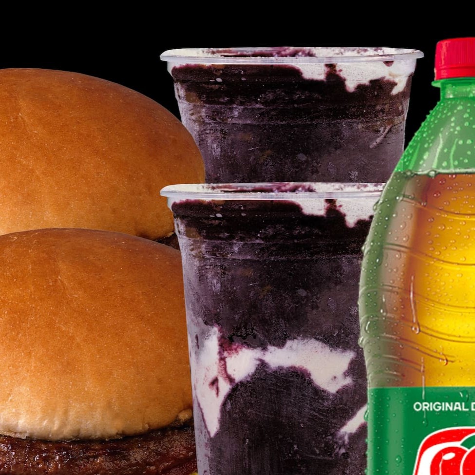 Perfeito para dividir (ou se deliciar sozinho): 2 suculentos hambúrgueres artesanais, 2 açaís refrescantes de 250ml e 1 Guaraná Antártica de 1 litro para completar a experiência com muito sabor e energia. Um combo completo para matar a fome e adoçar o Dia!