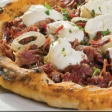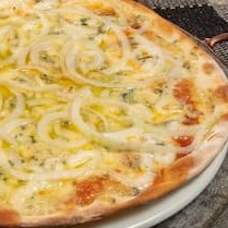 Um delicioso molho de tomateartesanal, queijo muçarela, cebola em rodelas fresquinha, azeitonas verde selecionadas e aquela pitada de óregano pra finalizar.