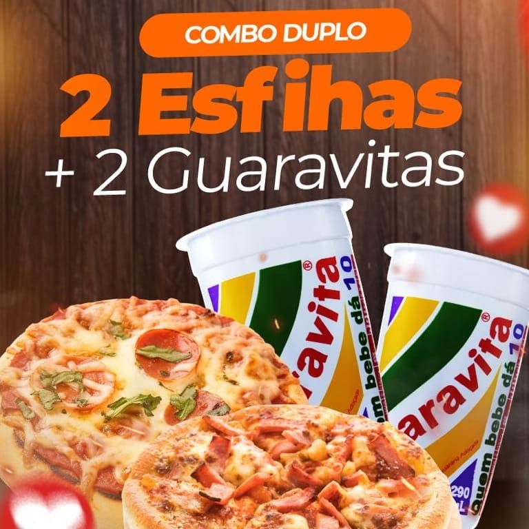 Aqui você compra duas esfihas de 20cm e leva dois guaravitas inteiramente grátis.