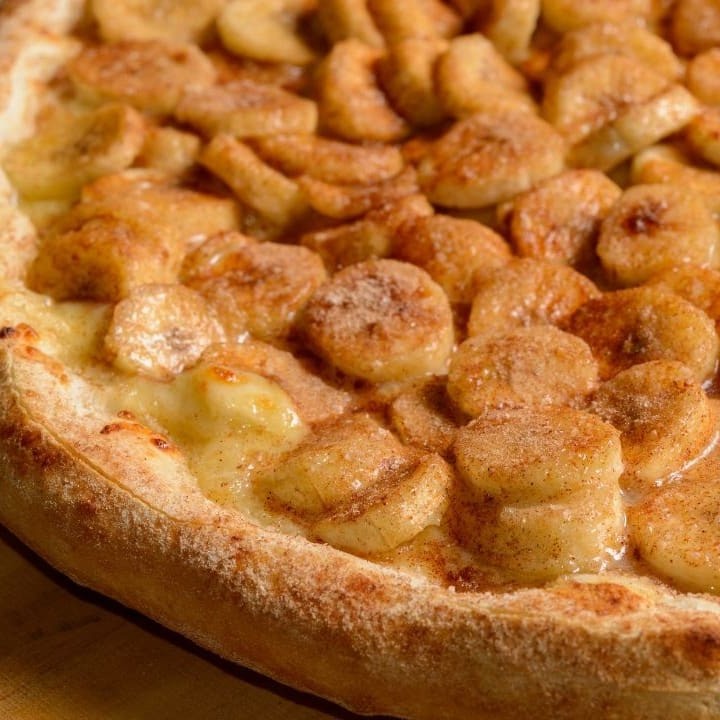 Creme de leite, muçarela, banana, açúcar, canela e chocolate ao leite.